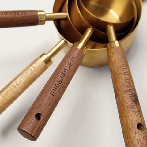 Pourquoi se contenter d'ustensiles ternes quand on peut avoir du beau et du pratique ? Ces cuillères doseuses associent le toucher chaleureux du bois naturel à l'élégance intemporelle du métal doré. Leur finition aspect laiton s'intègre parfaitement dans les cuisines modernes ou vintage.